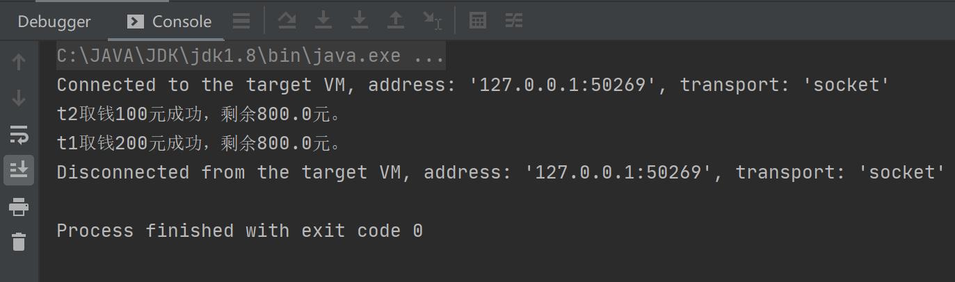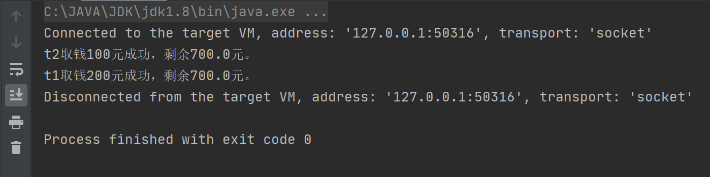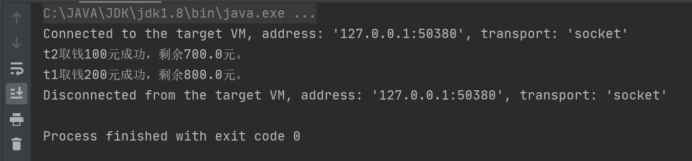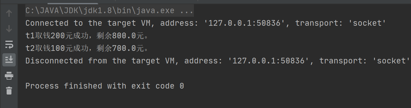 System.out.println(Thread.currentThread().getName() + "取钱" + money + "元成功,剩余" + account.getMoney() + "元。");