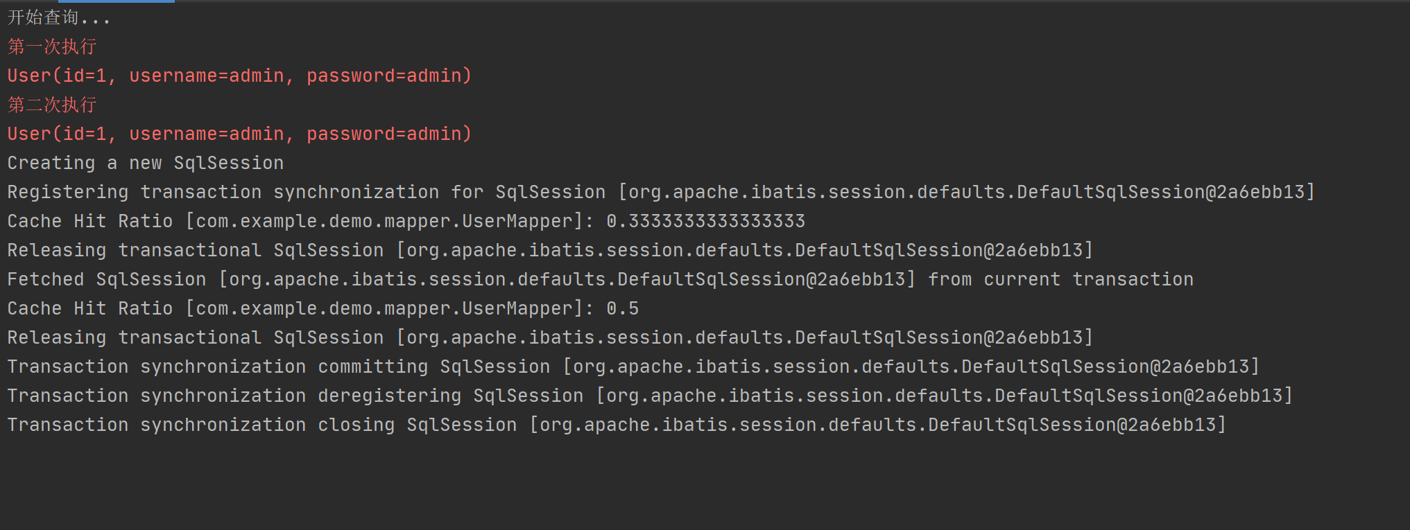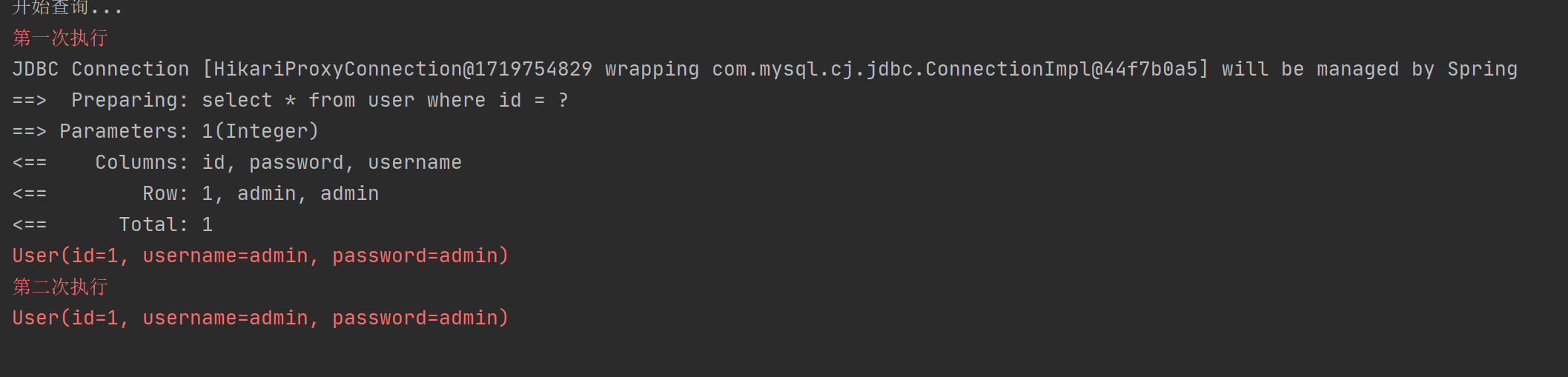 可以看到创建了一个新的SqlSession,执行了一次sql,在不开启缓存的情况下,肯定是要执行俩次sql的。